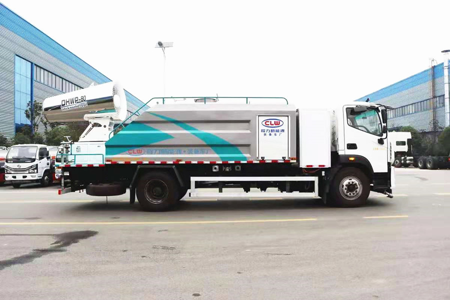 整車性能:后背式磷酸鐵鋰蓄電池機(jī)倉(cāng),質(zhì)保五年;駕駛室一鍵操作控制系統(tǒng);罐體碳鋼材質(zhì)或不銹鋼材質(zhì);后平臺(tái)加裝80米全自動(dòng)霧炮機(jī)組,霧化降塵作用。