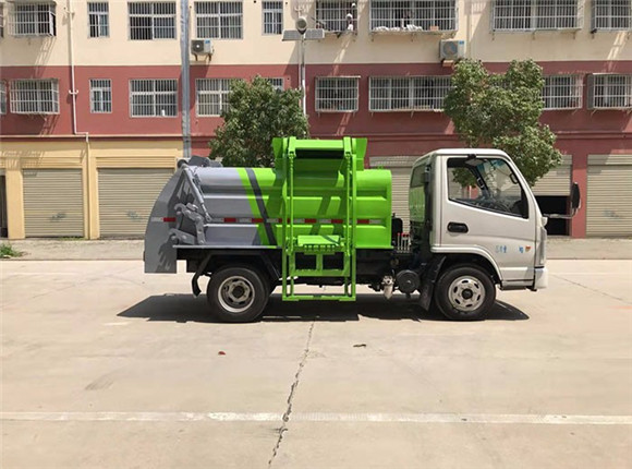 1.外觀造型美觀大方 垃圾箱橫向截面為方圓形、縱向截面為矩形框架,兩側(cè)為圓弧造型,整車顯得美觀大方。