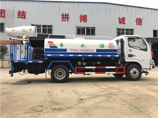 車輛配置:采用東風(fēng)原裝底盤,東風(fēng)D6型小多利卡駕駛室,3308mm軸距,朝柴102馬力國五發(fā)動機,萬里揚5擋變速箱,7.00鋼絲胎,氣剎,方向助力,帶空調(diào)。罐體容積:4.6立方,該車具有灑水車功能,前沖、后灑、側(cè)噴、泵自吸自排、綠化灑水炮、消防栓接口、可通過消防栓進水,帶自流閥,帶過濾裝置。后平臺加裝CLW-30型霧炮噴霧機組,噴霧射程30米。已順利發(fā)往江西南昌交付用戶使用!
