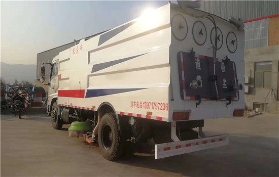 該車采用東風(fēng)天錦原裝底盤,DFL1160BX1V,東風(fēng)天錦D530一排半標(biāo)準(zhǔn)頂駕駛室,4700mm軸距,東風(fēng)康明斯180馬力發(fā)動(dòng)機(jī),國(guó)五排放,東風(fēng)6擋變速箱,9T后橋,9.00R20鋼絲胎,方向助力,離合器助力,氣剎制動(dòng),原廠ABS,原廠空調(diào);上裝配置為中置吸盤、選加中置2掃盤,康明斯副發(fā)動(dòng)機(jī)、施耐德控制開關(guān)、海普瑞思電磁閥組、無(wú)極變速自動(dòng)離合器、免維護(hù)離心式風(fēng)機(jī)、不銹鋼垃圾箱、高精度垃圾箱過(guò)濾系統(tǒng)(最高可達(dá)0.3微米)、進(jìn)口脈沖閥、尾部LED箭頭燈、手動(dòng)泵應(yīng)急系統(tǒng)、車尾霧狀噴水潤(rùn)濕功能。