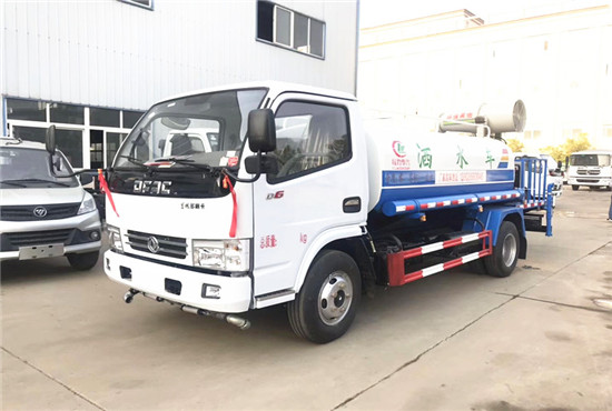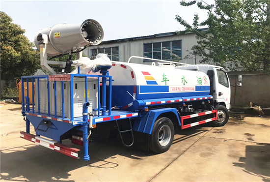 根據(jù)客戶要求:罐體容積約5立方;前沖后灑氣動(dòng)閥控制。專用功能為:前沖后灑,帶側(cè)噴,帶高位花灑,罐體后帶工作平臺(tái),平臺(tái)上安裝綠化灑水高炮,灑水炮可全方位旋轉(zhuǎn),并有多種雨?duì)羁烧{(diào)節(jié)(大雨、中雨、毛毛雨、霧狀),泵可自吸自排,帶自流閥,帶消防接頭,帶過濾裝置。后平臺(tái)配30型風(fēng)送式霧炮機(jī)及柴油發(fā)電機(jī)組。