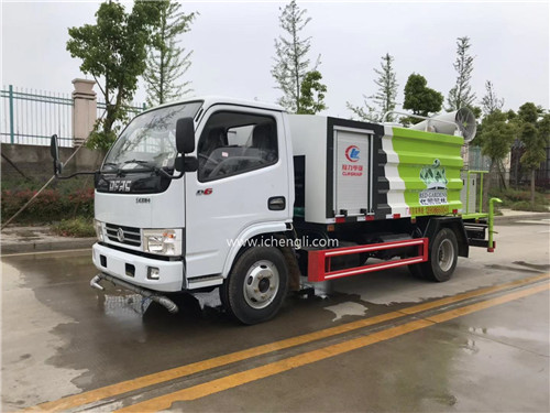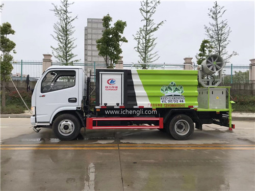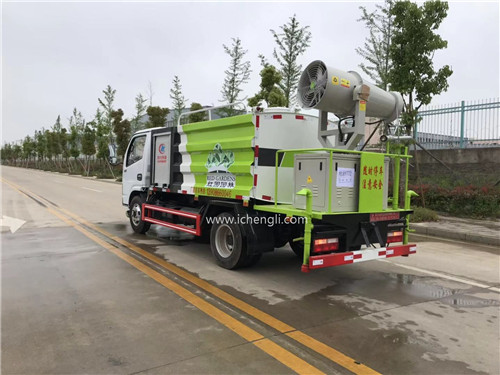 根據(jù)客戶要求:方形罐體容積約4.5立方。新款外形方形抑塵車,大氣,漂亮!專用功能為:前沖后灑,帶側噴,帶高位花灑,罐體后帶工作平臺,平臺上安裝綠化灑水高炮,灑水炮可全方位旋轉,并有多種雨狀可調節(jié)(大雨、中雨、毛毛雨、霧狀),泵可自吸自排,帶自流閥,帶消防接頭,帶過濾裝置。配30型風送式霧炮機及柴油發(fā)電機組內置安裝。