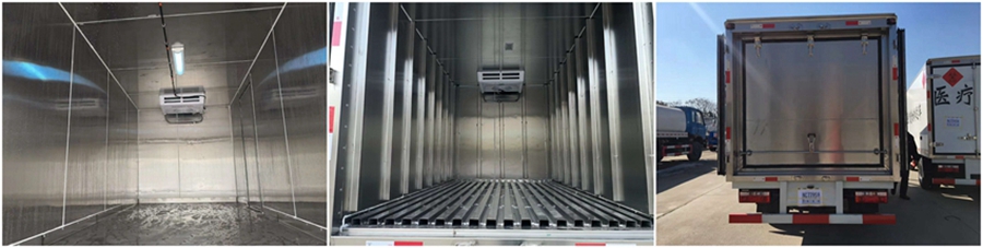 九 選裝配置:可選裝廂體側(cè)門(單側(cè)門或雙開門),可選裝鋁合金導風槽(導風槽有助于冷氣循環(huán),提升制冷效果),可選裝廂體頂部加固肉勾滑道(直滑道 或 對接互通式拐彎滑道)??蛇x裝廂體內(nèi)部采用全面不銹鋼材質(zhì)(海鮮運輸必須加裝,海水有腐蝕性),可選裝280V-380V外接電源(停車熄火后可插電冷機繼續(xù)制冷工作),可選裝溫濕度監(jiān)控記錄儀(帶打印功能)。
