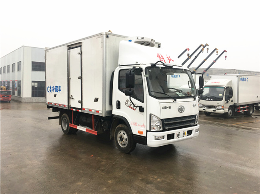 標(biāo)準(zhǔn):冷藏車由專用汽車底盤的行走部分,與隔熱保溫廂體(一般由聚氨酯材料,玻璃鋼組成、彩鋼板、不銹鋼等),制冷機(jī)組,車廂內(nèi)溫度記錄儀等部件組成,對于特殊要求的車輛,如肉鉤車,可加裝肉鉤,攔貨槽,鋁合金導(dǎo)軌,通風(fēng)槽等選裝件。
