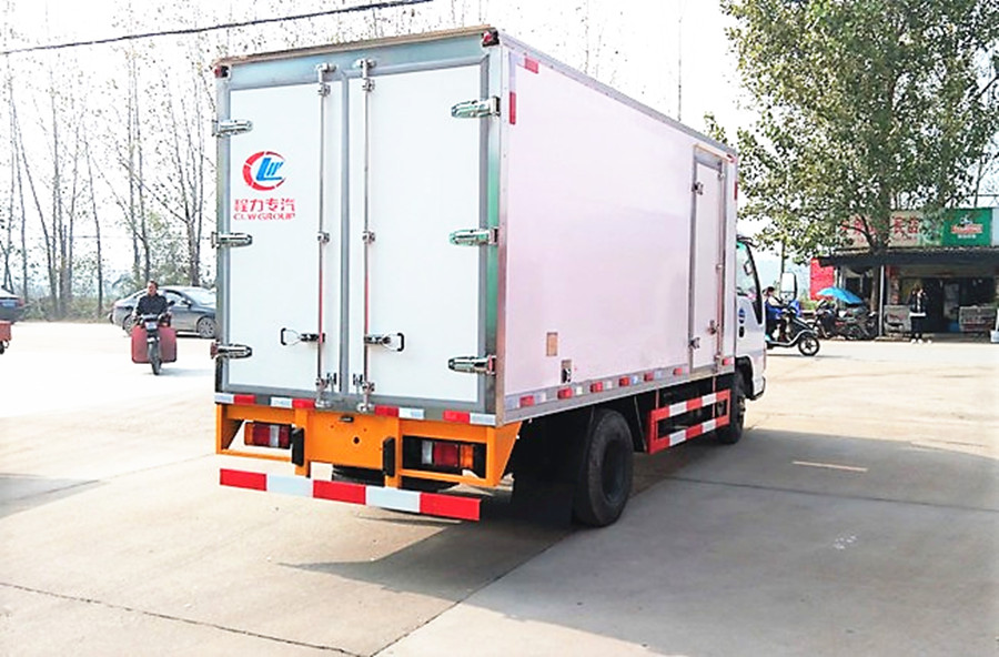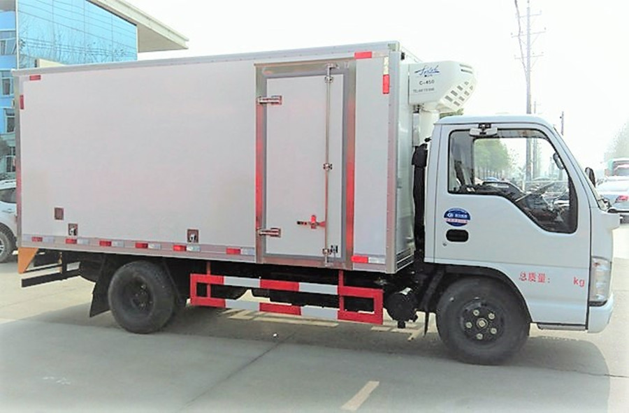 標(biāo)準(zhǔn):冷藏車由專用汽車底盤的行走部分,與隔熱保溫廂體(一般由聚氨酯材料,玻璃鋼組成、彩鋼板、不銹鋼等),制冷機(jī)組,車廂內(nèi)溫度記錄儀等部件組成,對于特殊要求的車輛,如肉鉤車,可加裝肉鉤,攔貨槽,鋁合金導(dǎo)軌,通風(fēng)槽等選裝件。