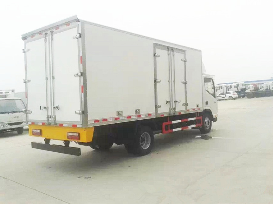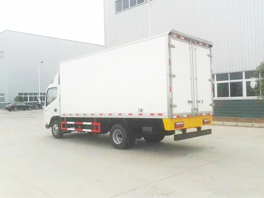 七 廂體配置:我公司冷藏車廂體采用液壓吸附一體成型生產(chǎn)線制造,保溫性能達到國家A級標準。廂體內(nèi)面料采用最新款納米玻璃鋼(不吸光、隔熱性好、硬度強、抗氧化),保溫材料為8cm高密度聚氨酯保溫層,全密封樹脂膠粘接。廂體框架為防銹處理槽鋼支撐,廂體四周采用鋁合金型材包邊,不銹鋼包角。廂體內(nèi)部加裝LED夜間照明燈,四角加裝LED式寬度。配后雙開門(不銹鋼包邊、不銹鋼鎖件合頁),(側門選裝)尾部加裝防撞膠塊,采用三元乙丙橡膠密封條,3M反光膠板!
