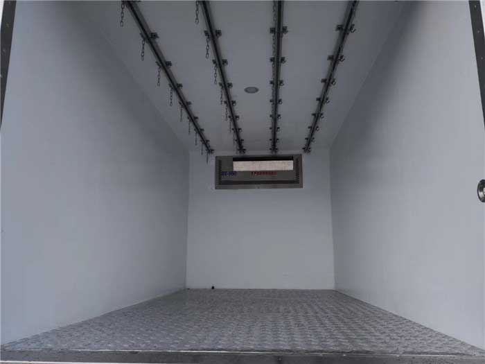 4.2米冷藏車_江淮駿鈴V6冷藏車上裝配置:箱體采取裝配工藝,箱板采取全塑與全封閉復(fù)合材料、食品級(jí)FRP相結(jié)合的結(jié)構(gòu)。能夠提供足夠大的裝載空間。不銹鋼廂式貨車門鎖。配溫度記錄儀,記錄運(yùn)輸過程中每個(gè)時(shí)間點(diǎn)的溫度和濕度變化情況。門邊條選取迷宮式橡膠密封條。抗低溫絕熱密封條加裝在廂體與門體間。