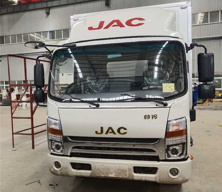 4.2米冷藏車_江淮帥鈴Q6冷藏車底盤配置:汽車雙電瓶12V。2噸前橋,加強型懸架結(jié)構(gòu)后橋。前伸式車頭、高角度晶鉆鷹眼大燈、隱藏式流線型A柱與車窗一體式設(shè)計、平貼窗側(cè)窗設(shè)計、高調(diào)式側(cè)滑門設(shè)計,給人足夠大氣,甚至威武的氣質(zhì)。離合器、油門、剎車的腳踏板均進行優(yōu)化設(shè)計,駕乘更舒適。750R16鋼絲胎抗壓能力強,安全性好,行駛平穩(wěn)。