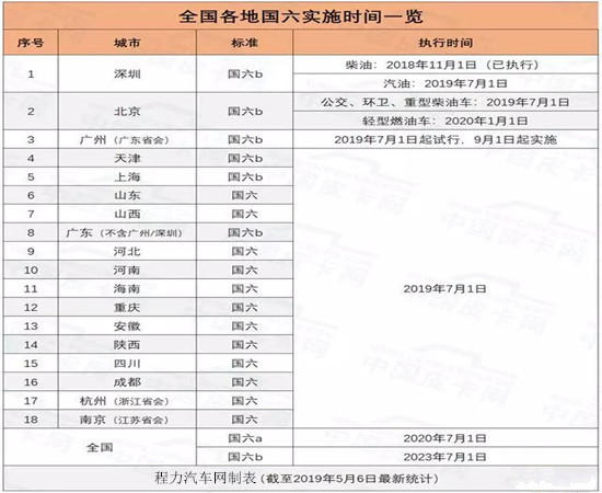 全國各地國六車輛執(zhí)行實施時間一覽,18個省市確定將提前實施