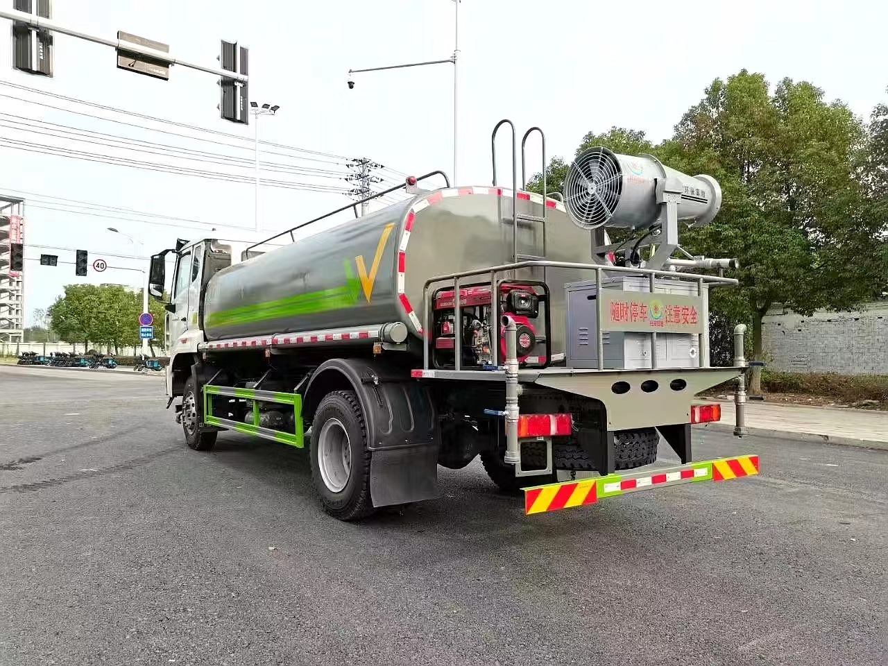 改裝配置:罐體材質(zhì)采用4mm優(yōu)質(zhì)碳鋼板材制作、容積15立方、裝配前沖、后沖、側(cè)噴、高位花灑、優(yōu)化管路設(shè)計(jì)具有自吸自排功能、后工作平臺(tái)、水炮、霧炮、根據(jù)需求可選:氣動(dòng)球閥門,駕駛室內(nèi)控制盒控制開關(guān)等。