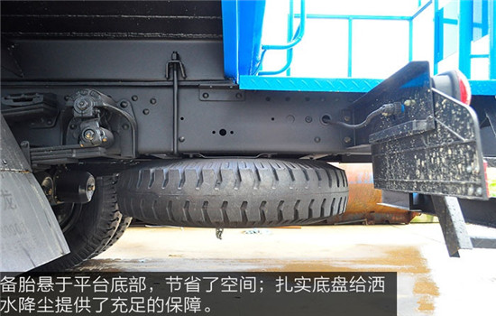 備胎懸于平臺底部,節(jié)省了空間,一定程度上也保護(hù)備胎免受雨水陽光的侵蝕,設(shè)計理念值得認(rèn)可。