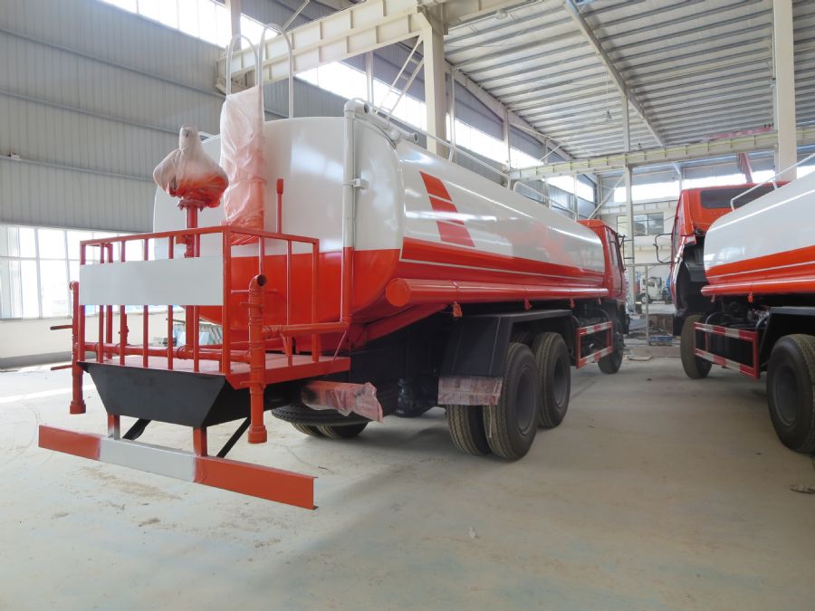 改裝配置:罐體采用4MM厚武鋼專用容積板制作,實(shí)際容積20立方,前沖后灑側(cè)噴,高位花灑,后工作平臺(tái)及綠化高炮,配專用水泵(泵進(jìn)泵出)及消防栓接口,兩根等長輸水管,金屬漆,其余標(biāo)配。