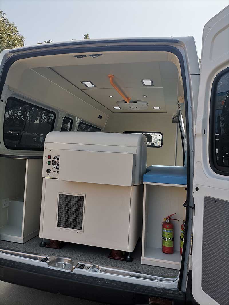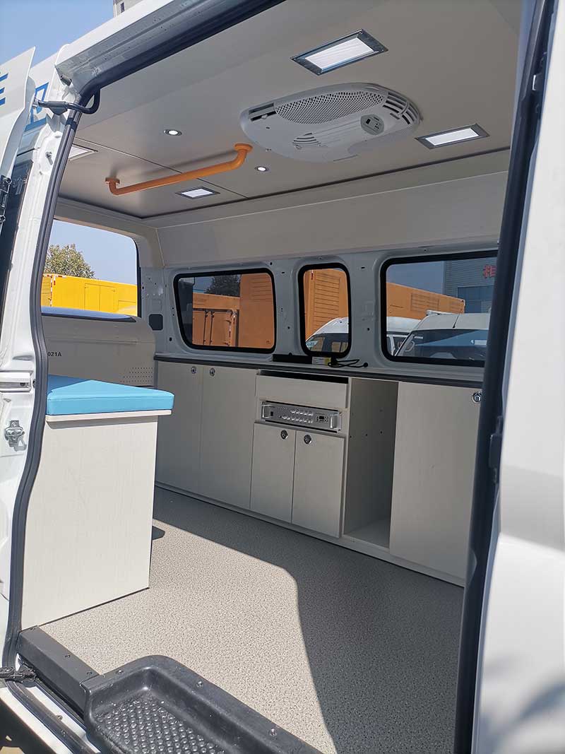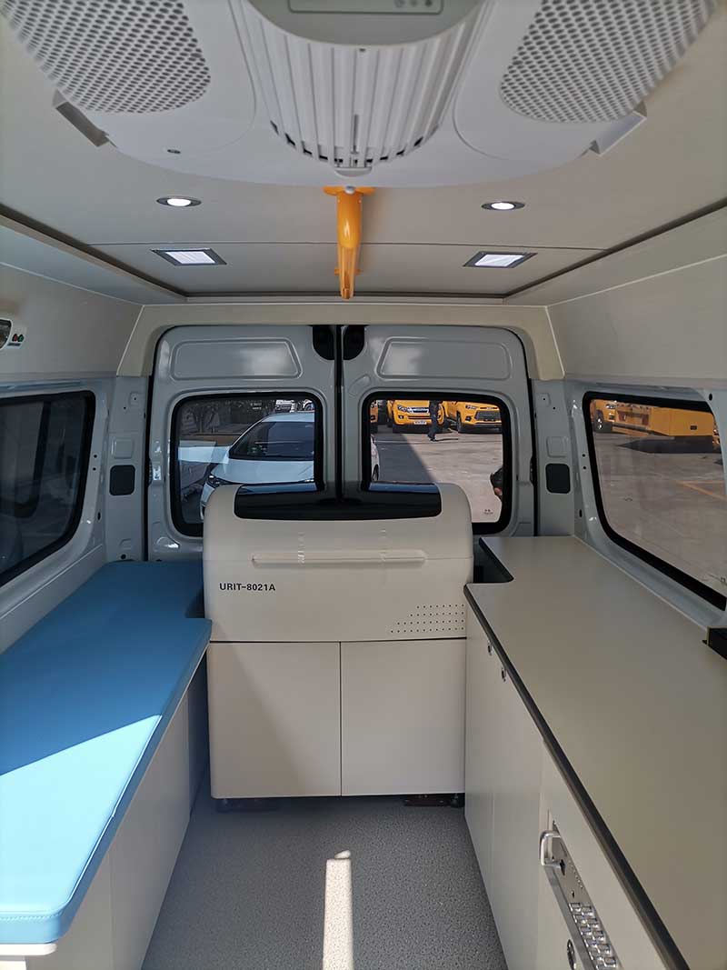 大通V80流動(dòng)體檢多功能檢測(cè)車(chē),第一排后部的隔板由PVC高密度板制成,光滑美觀,中間設(shè)有檢測(cè)窗。用到的各種改裝材料,綠色環(huán)保無(wú)污染,防火防水,各項(xiàng)性能符合相應(yīng)材料標(biāo)準(zhǔn)。對(duì)需要焊接和噴涂防銹漆的金屬零件,鍍鋅鈍化或?qū)щ娧趸忍幚沓绦蚴鞘紫纫龅模缓笤谲?chē)外噴涂與原車(chē)相同油漆。收納箱選用鋁合金制作,配備固定槽,避免行車(chē)時(shí)物品碰撞。車(chē)頂平臺(tái)選取鋁合金花紋板,耐磨、防滑,既美觀,又安全實(shí)用。它看起來(lái)整潔好看。艙內(nèi)設(shè)有ups應(yīng)急電源、醫(yī)用冰箱、體驗(yàn)床、電腦檢測(cè)臺(tái),麻雀雖小,五臟俱全。