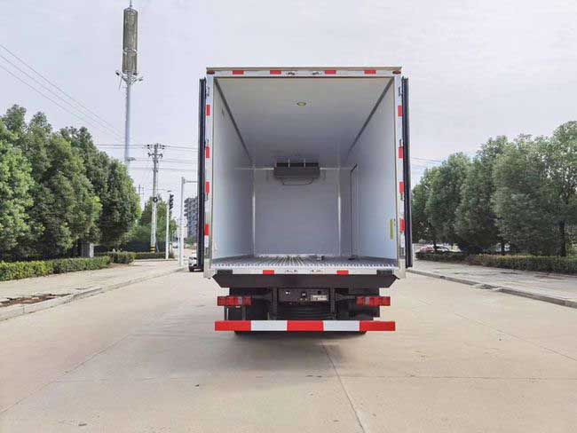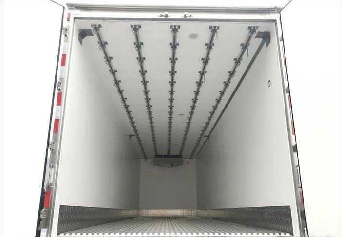 重汽豪瀚6.8米冷藏車,導(dǎo)軌肉鉤、T型通風(fēng)槽、右側(cè)開側(cè)門、溫度實(shí)時(shí)監(jiān)控帶打印裝置。中間為新型環(huán)保輕量化8CM保溫材料、加厚3.0玻璃鋼,高強(qiáng)度粘合劑、熱壓成型。廂體四周鋁合金包邊。中間夾層為聚氨脂發(fā)泡隔熱材料,各板塊間用高強(qiáng)度膠粘接,并用內(nèi)埋高強(qiáng)度螺釘進(jìn)行緊固,配以鋁合金型材鉚接成整體。