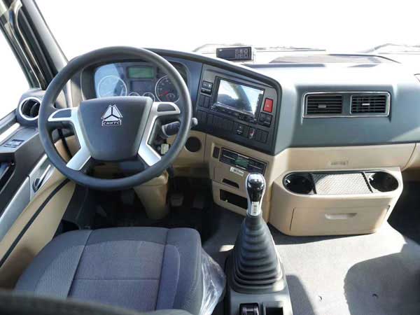 豪沃8檔大扭矩變速箱。275/80R22.5型號(hào)輪胎經(jīng)濟(jì)實(shí)用,安全性高。豪瀚H78B駕駛室。