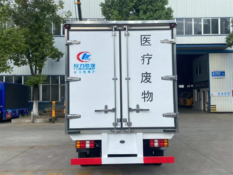江鈴順達3.96米醫(yī)療廢物轉(zhuǎn)運車上裝配置:廂體后門門周邊選取密封條,門是雙層的額,密封的盒保溫效果非常不錯。廂體周邊選取不銹鋼的包邊包角。選擇的都是不銹鋼的門鎖,門框,合頁等五金件。醫(yī)療廢物轉(zhuǎn)運車上必須要貼有危險標識,因為醫(yī)療垃圾是第六類感染性物品。