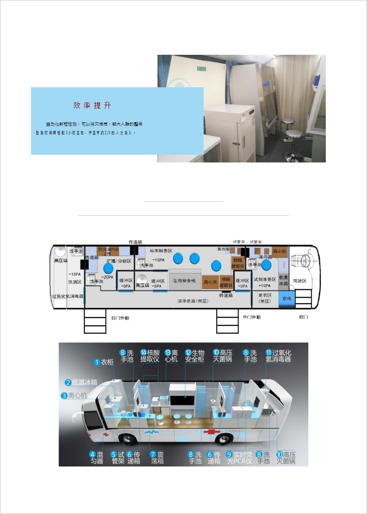 金旅12米體檢車醫(yī)療車,醫(yī)療室分區(qū): 試劑準(zhǔn)備區(qū):負(fù)責(zé)試劑準(zhǔn)備及配制RT PCR反應(yīng)液。車身電源設(shè)計(jì)分二路設(shè)計(jì),設(shè)置專用智能電控器,分別對DR機(jī)、照明和各功能檢查等系統(tǒng)單獨(dú)控制,并設(shè)漏電過載保護(hù)裝置。超大空間:實(shí)現(xiàn)最大級(jí)別中巴車的最長縱向距離,客艙內(nèi)部高度達(dá)到1980mm。檢測平臺(tái)系統(tǒng)各柜體內(nèi)部應(yīng)根據(jù)需要設(shè)置儀器固定裝置。