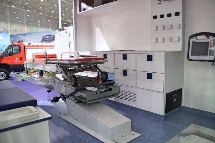 移動(dòng)5G腦卒中負(fù)壓救護(hù)車(chē),配備的有自動(dòng)上車(chē)擔(dān)架,下面固定不銹鋼板。醫(yī)療艙配備一套醫(yī)療柜和儀器柜組合柜。心電負(fù)壓除顫儀能夠放在醫(yī)療艙內(nèi)左側(cè)的設(shè)備架。肢體固定/上脊柱固定裝置:牽引裝置。醫(yī)療艙電動(dòng)分離式吸引裝置。艙內(nèi)有定向排風(fēng)系統(tǒng),可將空氣過(guò)濾器過(guò)濾后排放到外界,最大限度地降低了醫(yī)患人員交叉感染的可能,也使排到艙外的空氣保持潔凈安全。豪華樓梯擔(dān)架,并固定在醫(yī)療艙的左側(cè)后部。