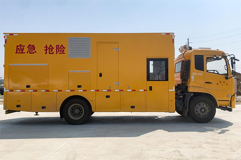 東風(fēng)天錦工程單排座搶險(xiǎn)車功能特點(diǎn):為了保證施工人員取放設(shè)備的有利于,裙圍設(shè)計(jì)成可翻轉(zhuǎn)的踏步,承載能力強(qiáng)(可承載 300kg),踏步機(jī)構(gòu)安全牢靠。從設(shè)計(jì)到裝備都非常的人性化,設(shè)備配套齊全,操作簡單容易。在不適用發(fā)電機(jī)組的情況下,便攜式軸流潛水泵可采用市電,配置市電輸入接口。實(shí)現(xiàn)的功能:吊裝設(shè)備、發(fā)電、逆變、攝像、照明、液壓動(dòng)力源、搶險(xiǎn)、報(bào)警燈報(bào)警警示等主要功能。除了供氣的作用外,這輛車還能夠?yàn)槭鹿尸F(xiàn)場給出照明。氣防車本身能夠用發(fā)動(dòng)機(jī)發(fā)電,在發(fā)動(dòng)機(jī)異常不能發(fā)電時(shí),還能夠用市政供電來為照明燈給出電力。