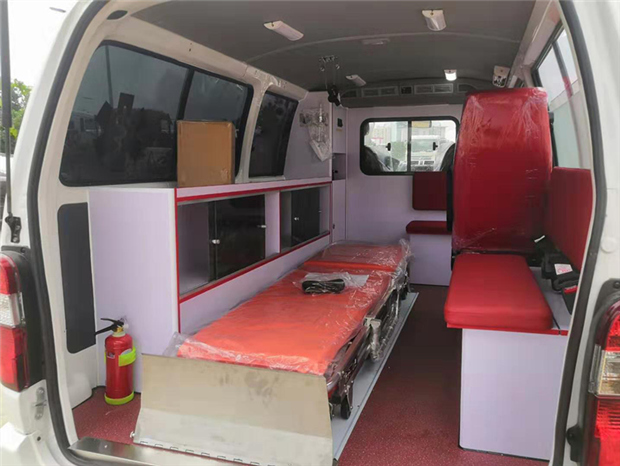 金杯閣瑞斯運(yùn)輸型救護(hù)車,氧氣瓶柜安裝在金屬卷簾窗里面,在醫(yī)療艙左側(cè)。汽車內(nèi)飾環(huán)保材料。對(duì)于短距離轉(zhuǎn)移的救護(hù)車,設(shè)備可能相對(duì)輕松。只需要擔(dān)架、氧氣和輸液鉤。醫(yī)療艙內(nèi)安裝的有吊柜,簡(jiǎn)單收納,配備有機(jī)玻璃。