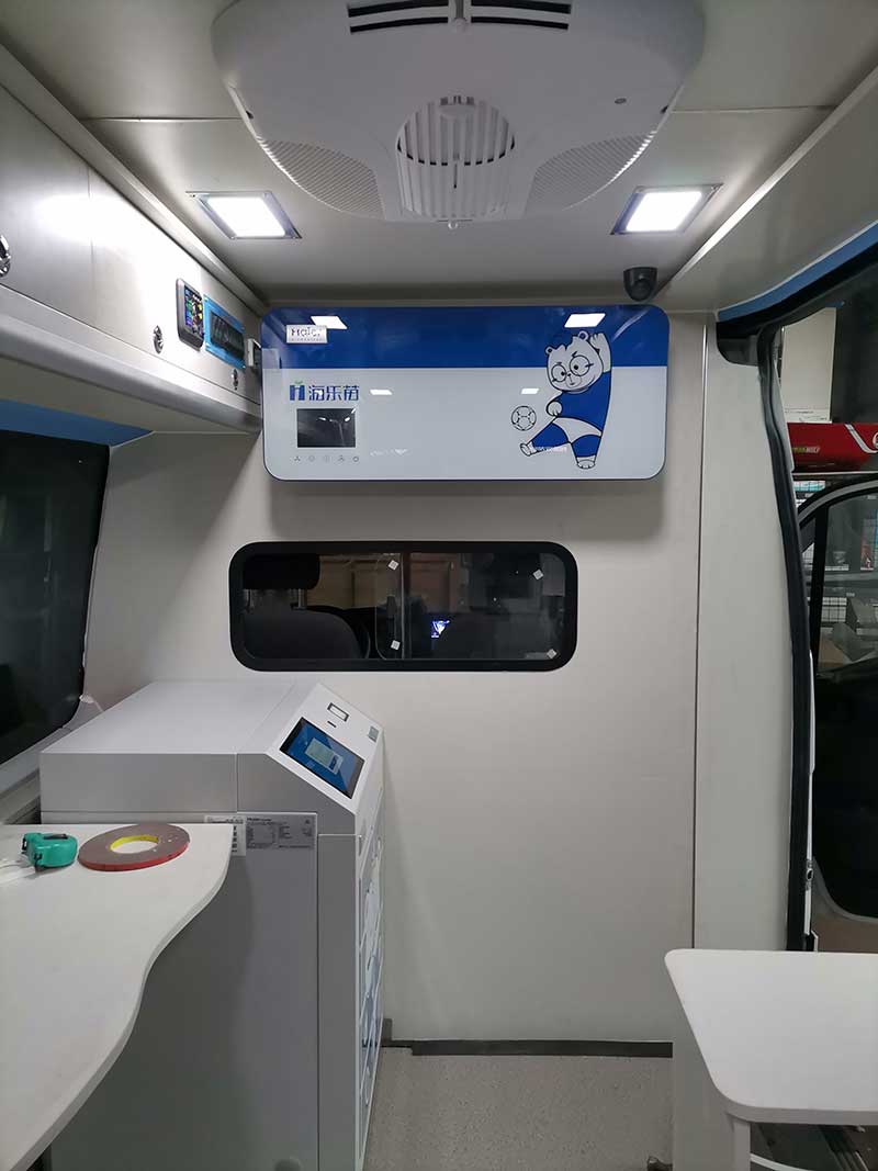 上汽大通V80疫苗接種醫(yī)療車上裝配置:置頂車載空調(diào),制冷制熱效果都很不錯(cuò)。交/直流插座 組合插座,可接三/二孔的多功能插座,交/直流兩用,可滿足多種用電要求。海爾醫(yī)用空氣凈化消毒器,利用空氣過(guò)濾系統(tǒng)不斷的將外部空間的氣體通過(guò)進(jìn)風(fēng)口與過(guò)濾網(wǎng)和空氣凈化過(guò)濾器凈化處理后,再放回空氣中,以達(dá)到保持車內(nèi)空氣潔凈的效果。裝有用于醫(yī)療診斷、健康體檢功能的醫(yī)療器械柜,紫外線消毒燈等醫(yī)療專用設(shè)施。原裝車身可可配前格柵、側(cè)踏板、推拉式側(cè)窗、輪輞和車輪裝飾罩。獨(dú)立電源中央控制系統(tǒng),安全輕易。中隔斷與駕駛艙隔離密閉,帶推拉窗。