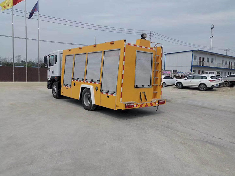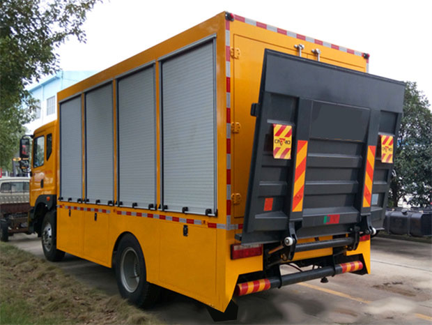 多利卡D9工程黃牌搶險救援車,本實用新型的有益效果:結(jié)構(gòu)布置科學(xué)合理,綜合性、一體化程度高,非常實用。整體穩(wěn)定性好,快速響應(yīng)排水效率高、一體操作輕便實用、功能多樣組合便利、用途廣泛性價比高。整車底盤后部安裝2套電動支撐系統(tǒng),保證車身行駛安全。可代步,可照明,可供電的功能,為夜間施工救險給予了便利。踏步選用花紋鋁板,防滑耐磨,采取壽命長。廂體使用特殊材質(zhì),整體重量輕,強度高,耐腐蝕性強。