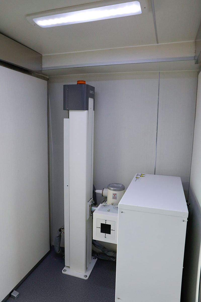 金旅7米體檢車醫(yī)療車上裝配置:球管陽極增加輔助散熱風(fēng)扇,滿足大流量體檢球管曝光的需求。頂置車載空調(diào),RV專用,制冷量3000,制熱量3000。DR檢測區(qū):四周墻的墻體由鉛皮、夾板和裝飾板連成一體固定在框骨架上形成,四周墻的 一墻體上開設(shè)有門,其中,門由鉛防護(hù)門構(gòu)成。胸骨抑制及胸廓提取。63安外接電源插座,市電外接充電插座,帶防水蓋。頂部照明燈4盞,LED 形式,24V,環(huán)保節(jié)能。車載數(shù)字化X射線攝影系統(tǒng)是七喜醫(yī)療專為移動體檢車設(shè)計的一款高品質(zhì)產(chǎn)品。熱容量高達(dá)330khu的西門子優(yōu)質(zhì)球管,搭配56kw高功率高壓發(fā)生器,可適合各種體型的受檢者,滿足大流量體檢需求。