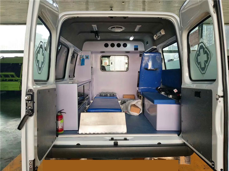 江鈴特順轉(zhuǎn)運型救護車,小型救護車常見于于農(nóng)村,通過性更好。前后對講機,車頂排風扇,醫(yī)療艙隔墻后折疊醫(yī)生看護座椅1,表面覆紅色或藍色皮。車身內(nèi)部使用國內(nèi)先進負壓設(shè)備,快速形成車身內(nèi)外氣壓差,很大限度避免醫(yī)患人員交叉感染,車內(nèi)空氣吸入車載凈化系統(tǒng)。大型救護車分中頂和高頂兩種。