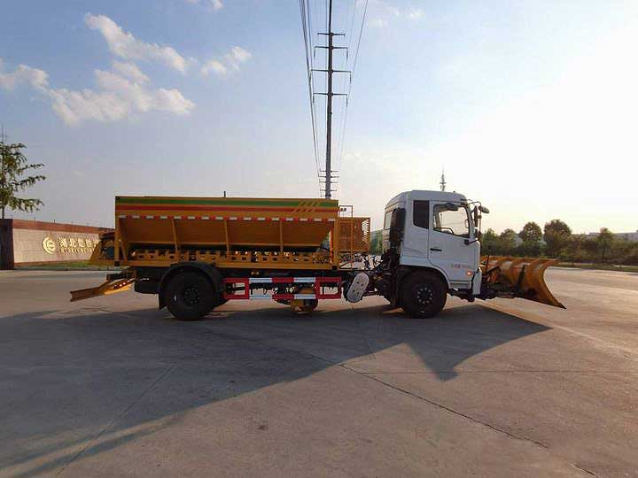 東風(fēng)天錦12方除雪車,上裝廂體配備高質(zhì)量的融雪撒布機。除雪鏟3-3.5米。除雪鏟結(jié)構(gòu)合理,可將雪推向一側(cè),并能起到拋雪功能,除雪鏟設(shè)防雪棚,具有防止雪飛濺到作業(yè)車擋風(fēng)玻璃上,以免影響駕駛員視線。刷毛為圓盤式單片組合而成,選取聚丙烯與彈性鋼絲混合排列。車體之外配備照明系統(tǒng),輕易夜間作業(yè)。