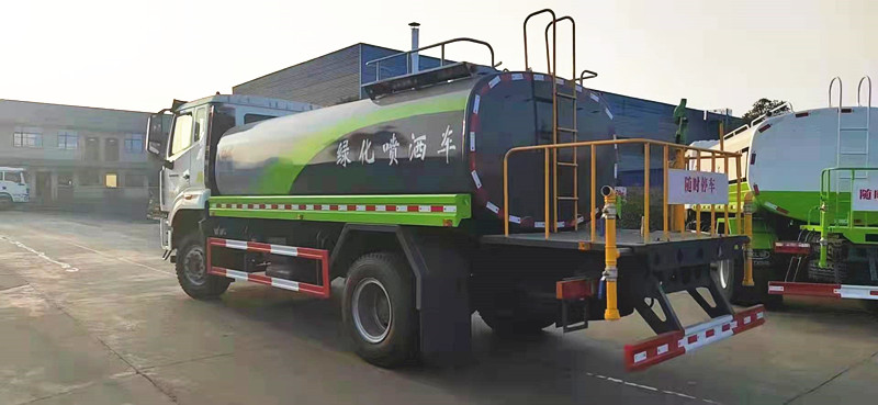 專用配置:罐體容積:15 立方,罐體鋼板為4mm碳鋼Q235材質(zhì)專用容積板一次成型,罐內(nèi)隔板具有防波作用,以減輕汽車行駛時(shí)罐體液體沖擊;配大功率專用灑水泵,泵可自吸自排;整車前沖、后灑、側(cè)噴、后平臺帶綠化灑水炮,灑水炮可全方位旋轉(zhuǎn),可連續(xù)調(diào)成直沖狀、大雨、小雨、毛毛雨;前封頭帶水位計(jì),后平臺主管路帶1寸澆花接口,后爬梯,帶1個(gè)消防接頭,帶1個(gè)自流閥,1個(gè)過濾裝置。
