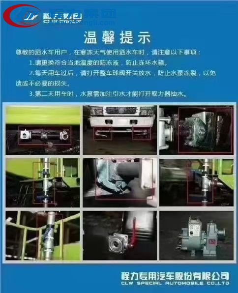 尊敬的灑水車用戶,在寒凍天氣使用灑水車時(shí),請(qǐng)注意以下事項(xiàng):