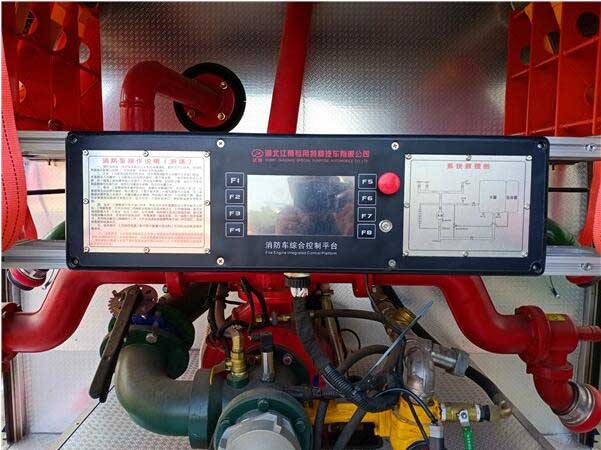 凱普特K7_5方水罐消防車,器材箱外設(shè)鋁合金卷簾內(nèi),內(nèi)有照明燈。水泵上面的操作面板、操作按鈕、操作說明、以及各種儀表,布局合理,標(biāo)注醒目,易于操作。采取的是優(yōu)質(zhì)的鋼材制成安全爬梯是折疊式的,利于攀爬和收納,穩(wěn)固安全。水罐使用3mm厚優(yōu)質(zhì)碳鋼制成。警報(bào)器功率為100W;警報(bào)器、警燈、爆閃燈電路為獨(dú)立式附加電路,控制器件安裝在駕駛室內(nèi)。全車前部為水罐+器材箱,后部為泵房。配有前、后示廓燈,兩側(cè)各一只轉(zhuǎn)向燈,器材箱、泵房內(nèi)均裝有照明燈,并適應(yīng)GB4785規(guī)定。附加儀表、開關(guān)集中布置在控制面板上,容易操作。