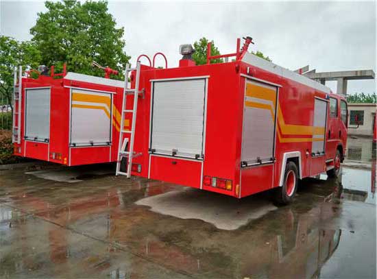 3噸泡沫消防車_慶鈴五十鈴700P泡沫消防車,翻板式踏板選擇氣彈簧、門止限位裝置雙重固定,安全性能靠得住。泵房位于車輛后部,兩邊與后邊設(shè)鋁合金卷簾門,內(nèi)有照明燈,泵室兩側(cè)可放置部分常用器材。除原車設(shè)備外,駕駛室內(nèi)加裝有取力器控制指示燈、100W警報(bào)器、LED警燈、標(biāo)志燈、示廓燈開關(guān)及后部照明燈等。器材廂門采用鋁合金簾子門,滾筒、滑槽導(dǎo)向,啟閉輕便、噪音小。裝水2000L,泡沫1000L。