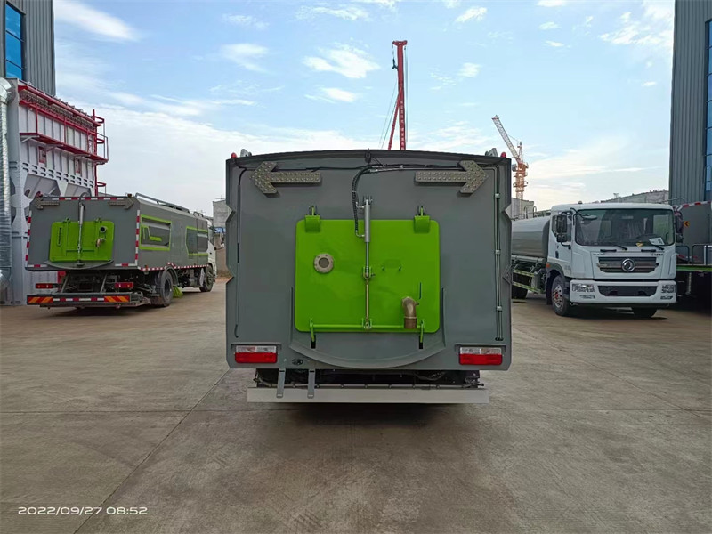 多利卡D7_9方洗掃車功能特點:車尾裝有后噴霧桿,可進行路面噴霧保濕降塵。多利卡D7_9方洗掃車使用副發(fā)動機或電機亦有混合動力系統(tǒng)驅(qū)動高壓水泵、風(fēng)機及工作裝置。多利卡D7_9方洗掃車使用PLC一鍵自動控制系統(tǒng),人性化語音提示裝置,操作簡潔、輕松。具有作業(yè)裝置集中,噴嘴離地間距恒定,刷洗—沖洗—吸收污水等作業(yè)動作連續(xù)流暢,作業(yè)飛濺少、污水吸凈率高,清洗寬度大,清洗效率高等特點??梢噪S垃圾箱體舉升的動力倉罩可使動力系統(tǒng)的維修保養(yǎng)極為便利。副發(fā)動機帶車用離合器,啟動和停止時,離合器分離,延時后接洽。清洗路沿石,可同時對路沿石立面、貼近路沿的路面進行洗刷,對路沿石頂面進行沖刷,并將污水和垃圾收走,能較好的解決路沿清潔問題。