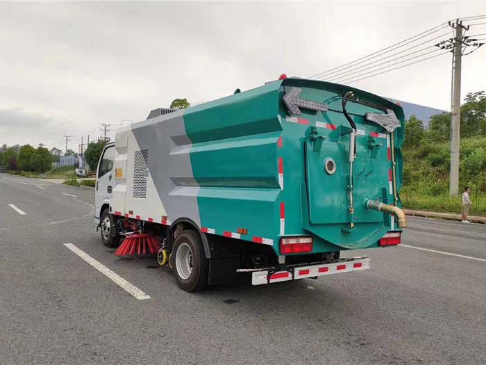 多利卡D6_6方洗掃車,清洗路沿石,可同時對路沿石立面、貼近路沿的路面進行洗刷,對路沿石頂面進行沖刷,并將污水和垃圾收走,能不差的解決路沿清潔問題。先進的“觸摸屏+CAN總線控制+PLC”的電控系統(tǒng)模式,操作方便,安全性高。洗掃車作業(yè)時先用邊刷將道牙處的垃圾向中間集中,再用高壓水進行清洗,然后由吸口將污水及垃圾吸到污水箱中。副發(fā)油門、掃盤升降、掃盤旋轉(zhuǎn)等作業(yè)裝置可裝配“一鍵式”智能控制,操作更輕易、更省心。液壓元件使用集成疊加設計,駕駛室電液集中控制,操作容易。多利卡D6_6方洗掃車采用副發(fā)動機或電機亦有混合動力系統(tǒng)驅(qū)動高壓水泵、風機及工作裝置。手持不銹鋼噴槍配快速接頭,能容易地與沖洗卷盤連接或脫開。