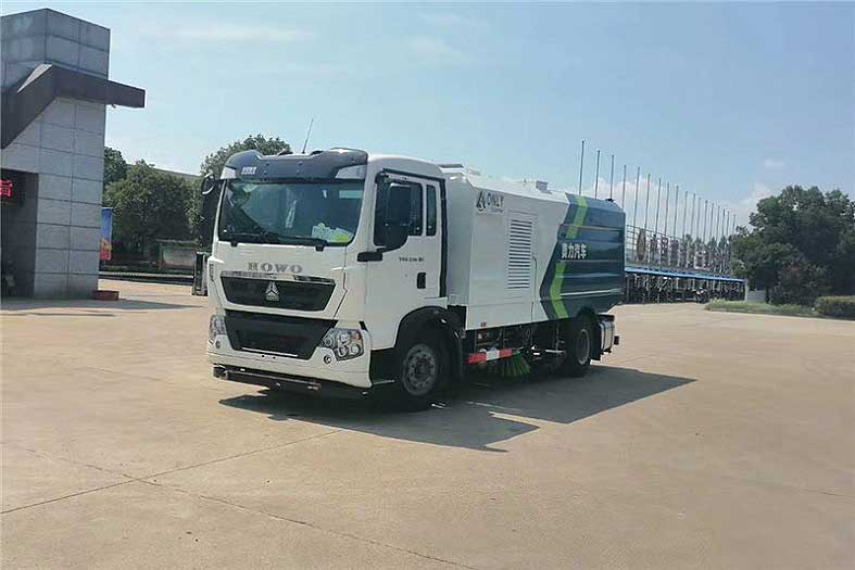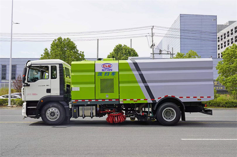 16方洗掃車_重汽豪沃T5G洗掃車,具有作業(yè)裝置集中,噴嘴離地間距恒定,刷洗—沖洗—吸收污水等作業(yè)動作連續(xù)流暢,作業(yè)飛濺少、污水吸凈率高,清洗寬度大,清洗效率高等特點。自動離合器驅(qū)動風機和高壓水泵,減輕風機啟動和停止時對發(fā)動機的沖擊。應(yīng)用副發(fā)動機或電機亦有混合動力系統(tǒng)驅(qū)動高壓水泵、風機及工作裝置。駕駛室后下方裝有低壓前沖,沖洗寬度可達24m,可像灑水車一樣對路面進行大面積沖洗。具有路面清掃、路面洗刷、高壓清洗、路緣石洗刷、垃圾收集、污水回收、噴霧和道路隔離墻清洗等多種作業(yè)功能。