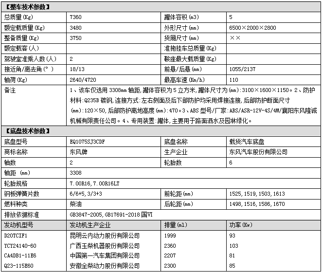 上裝配置:罐體容積約:5立方米,罐體鋼板采用Q235碳鋼鋼材,前沖后灑、側(cè)噴、平臺(tái)高炮、自流閥及消防接頭各1個(gè)、水管2根、標(biāo)配億豐泵或金龍泵,后平臺(tái)加裝30米霧炮機(jī)組;其他標(biāo)配。