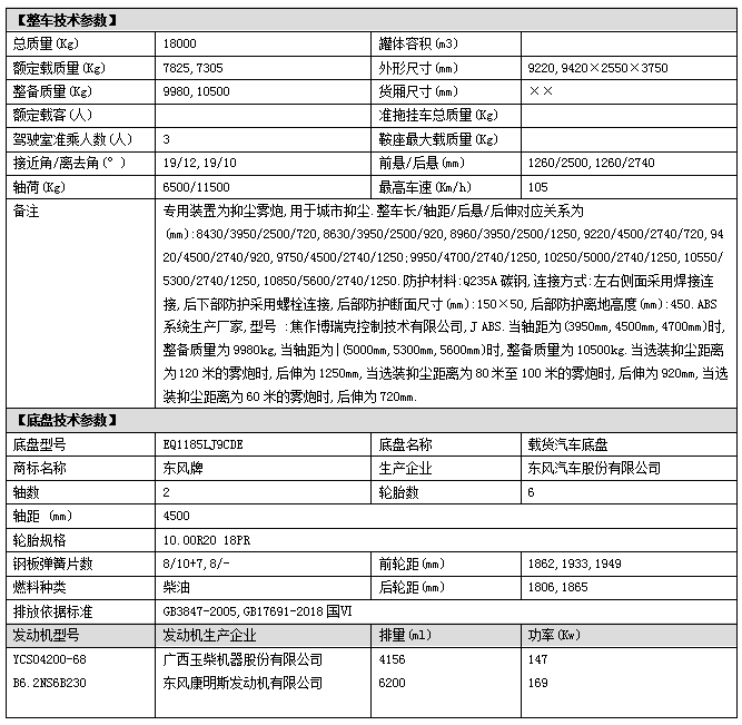 東風(fēng)多利卡D9多功能抑塵車(容積:12立方)廣泛應(yīng)用于市政環(huán)衛(wèi)及各類工礦企業(yè)噴霧降塵、綠化、消毒殺菌等用途,該車具有灑水車的全部功能,東風(fēng)多利卡D9抑塵車罐體容積12立方,配備的噴霧機可選配50-120米規(guī)格。
