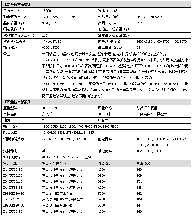 底盤(pán)配置:東風(fēng)天錦系列新款駕駛室,4700mm軸距,康明斯230馬力(B6.2NS6B230)發(fā)動(dòng)機(jī),國(guó)六排放,陜齒8檔變速箱,10.00R20鋼絲胎,原裝空調(diào),電動(dòng)窗,ABS,斷氣剎,方向助力;