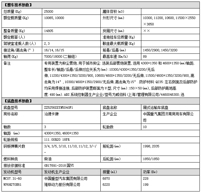 上裝配置:罐體容積:18立方,方形罐體,罐體鋼板采用Q235碳鋼鋼材制作,鋼板厚度5mm,配大功率專用灑水車泵,帶前沖、后灑、側(cè)噴功能,尾部帶工作平臺(tái),平臺(tái)上安裝綠化高炮和風(fēng)筒式霧炮機(jī)(霧炮可用于農(nóng)藥噴灑、多功能抑塵等功能),帶柴油副發(fā)電機(jī)組,操控方式:手動(dòng)/無線遙控器(遙控距離100米),帶消防接口,自流閥、可自吸自排,該車輛結(jié)構(gòu)緊湊,布局合理,部件做工精細(xì),產(chǎn)品配置完善,操作性能好。后平臺(tái)可選裝50-60米、60-70米、80米、100米、120米霧炮機(jī)組;其他標(biāo)配。