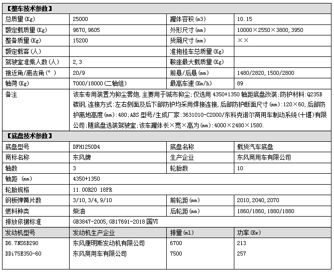 上裝配置:罐體容積:18立方,方形罐體,罐體鋼板采用Q235碳鋼鋼材制作,鋼板厚度5mm,配大功率專用灑水車泵,帶前沖、后灑、側(cè)噴功能,尾部帶工作平臺(tái),平臺(tái)上安裝綠化高炮和風(fēng)筒式霧炮機(jī)(霧炮可用于農(nóng)藥噴灑、多功能抑塵等功能),帶柴油副發(fā)電機(jī)組,操控方式:手動(dòng)/無線遙控器(遙控距離100米),帶消防接口,自流閥、可自吸自排,該車輛結(jié)構(gòu)緊湊,布局合理,部件做工精細(xì),產(chǎn)品配置完善,操作性能好。后平臺(tái)可選裝50-60米、60-70米、80米、100米、120米霧炮機(jī)組;其他標(biāo)配。