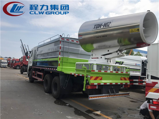 天龍抑塵車工作原理:采用配備的副發(fā)動(dòng)機(jī)及發(fā)電系統(tǒng)向(霧炮)風(fēng)機(jī)供電,利用超高風(fēng)壓將高壓水泵噴出的水霧加壓噴射,以得到更遠(yuǎn)距離的輻射范圍。霧炮采用遙控裝置,可自由調(diào)整噴射角度及旋轉(zhuǎn)方向,使用更加便捷。霧炮車同時(shí)也被廣泛應(yīng)用于城市街道、港口碼頭、露天物料堆場、煤炭物流園區(qū)、露天礦山開采區(qū)、露天爆破粉塵、建筑施工拆遷、城市園林綠化、農(nóng)業(yè)噴藥等項(xiàng)目或場所的除塵降溫、消毒防疫。東風(fēng)天龍多功能抑塵車后部可選配河南萬豐牌WF-120型環(huán)保噴霧機(jī)組,實(shí)際水霧射程80-100米左右。